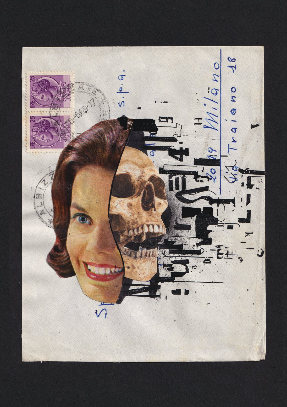 Unique and original analog collage on a vintage italian envelope